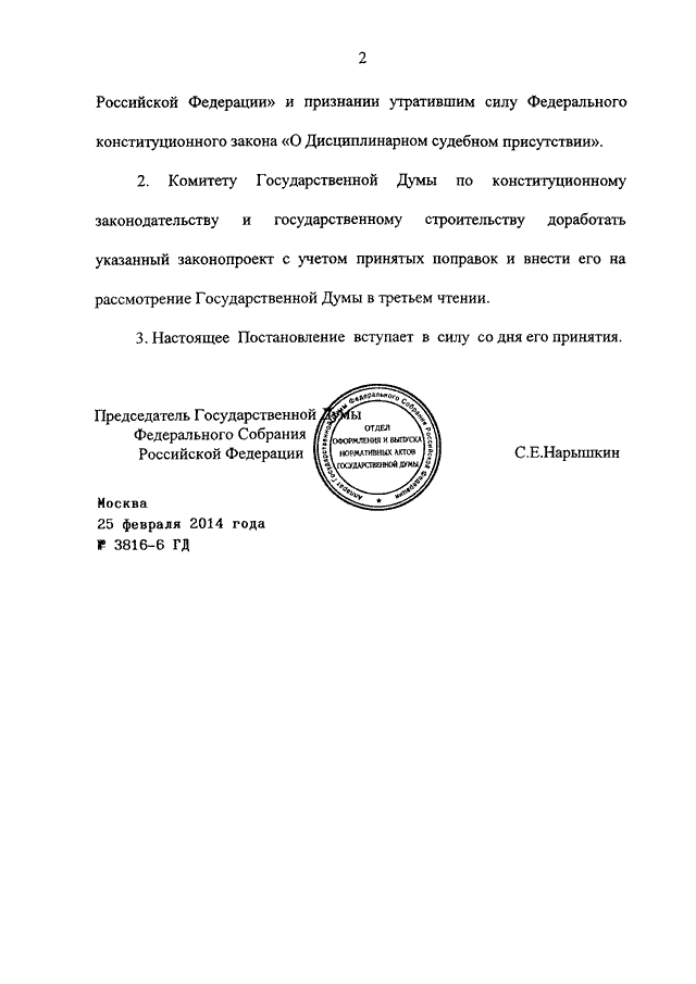 ПОСТАНОВЛЕНИЕ ГД ФС РФ от 25.02.2014 N 3816-6 ГД