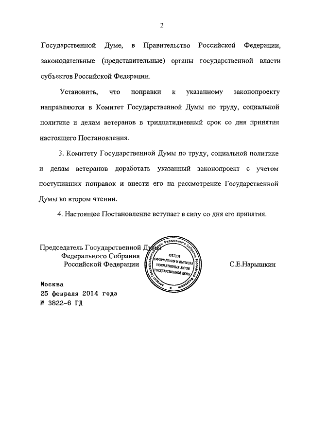 ПОСТАНОВЛЕНИЕ ГД ФС РФ от 25.02.2014 N 3822-6 ГД