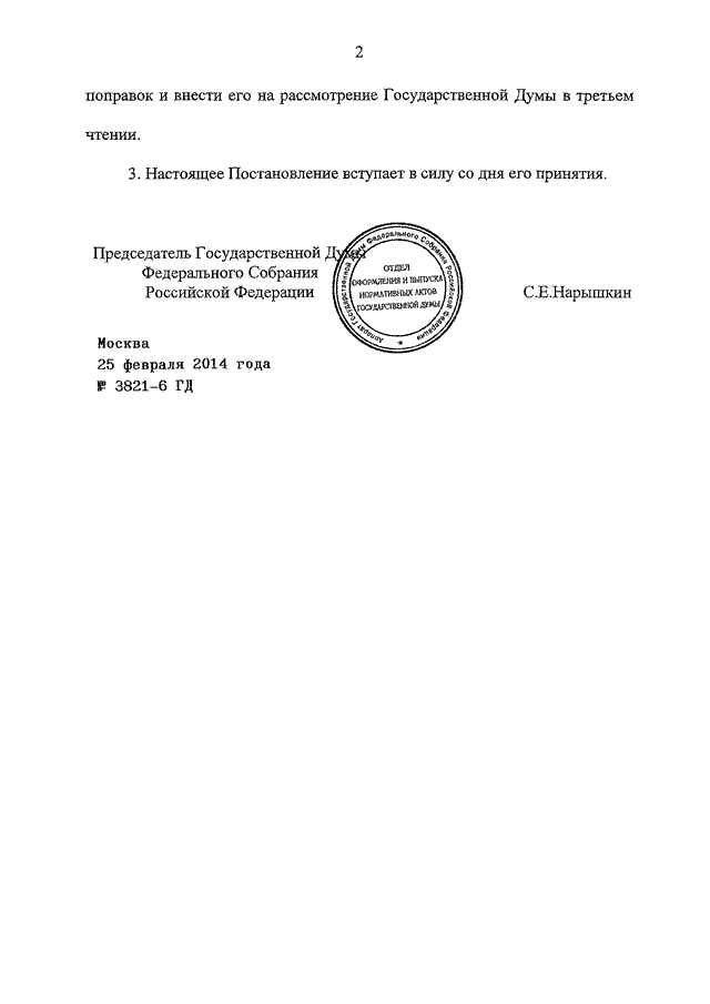 ПОСТАНОВЛЕНИЕ ГД ФС РФ от 25.02.2014 N 3821-6 ГД
