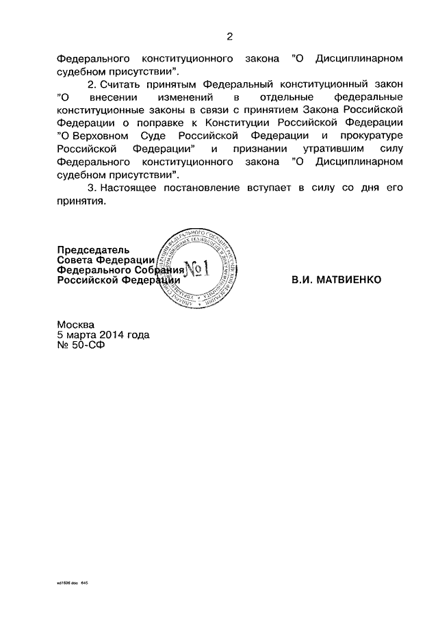 ПОСТАНОВЛЕНИЕ СФ ФС РФ от 05.03.2014 N 50-СФ