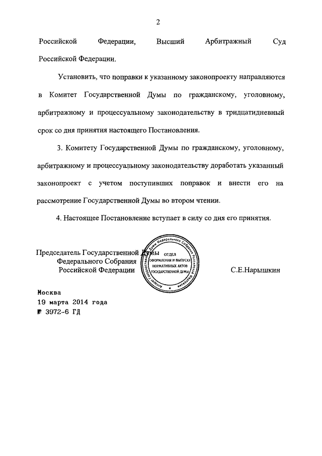 ПОСТАНОВЛЕНИЕ ГД ФС РФ от 19.03.2014 N 3972-6 ГД