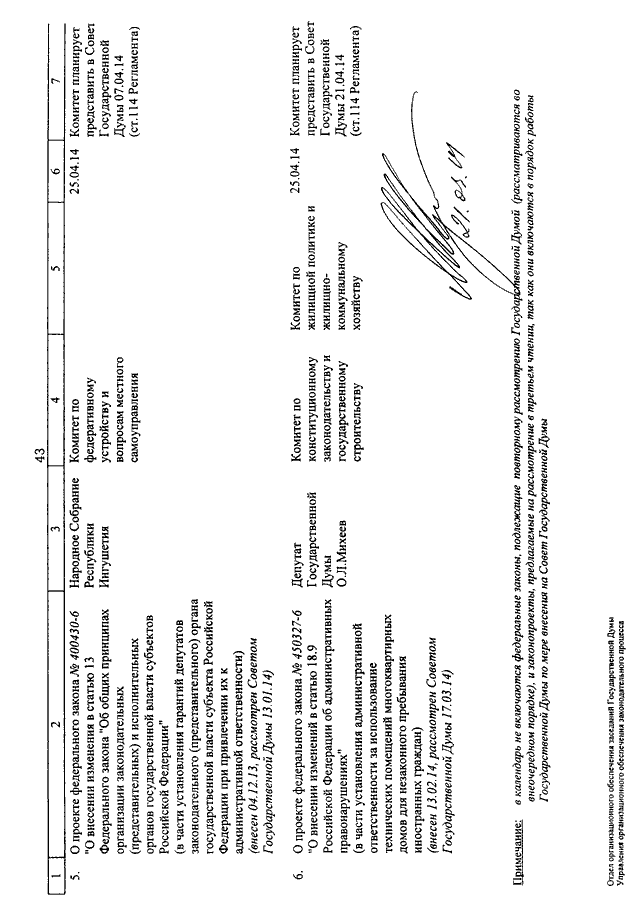 "О КАЛЕНДАРЕ РАССМОТРЕНИЯ ВОПРОСОВ ГОСУДАРСТВЕННОЙ ДУМОЙ С 1 ПО 25 АПРЕЛЯ 2014 ГОДА"