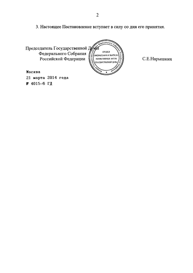 ПОСТАНОВЛЕНИЕ ГД ФС РФ от 21.03.2014 N 4015-6 ГД