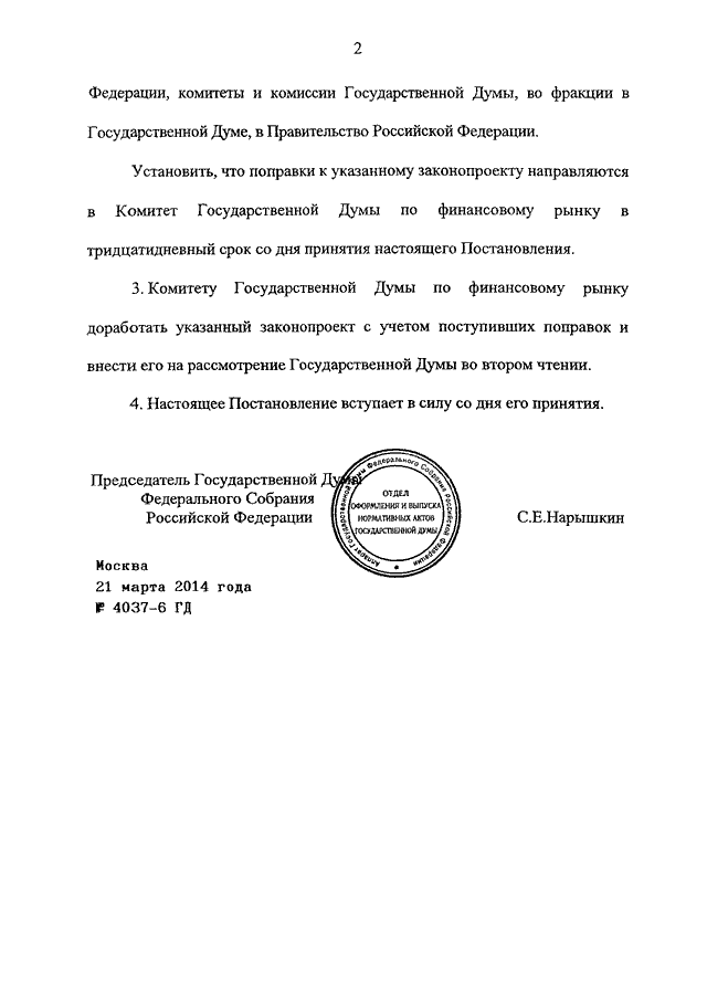 ПОСТАНОВЛЕНИЕ ГД ФС РФ от 21.03.2014 N 4037-6 ГД