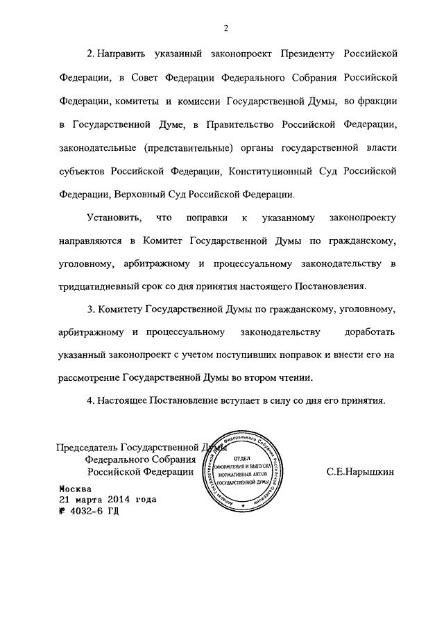 ПОСТАНОВЛЕНИЕ ГД ФС РФ от 21.03.2014 N 4032-6 ГД