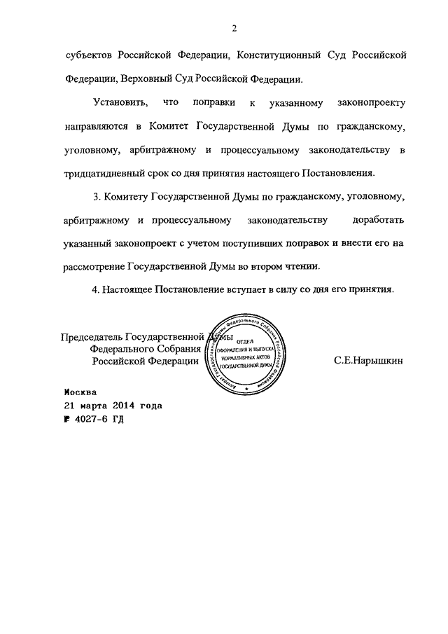 ПОСТАНОВЛЕНИЕ ГД ФС РФ от 21.03.2014 N 4027-6 ГД