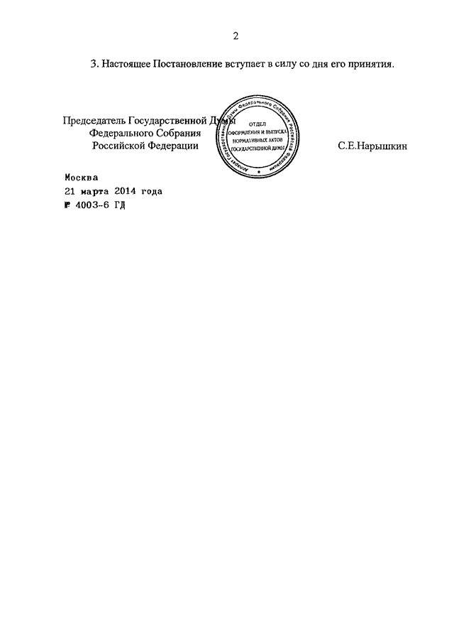 ПОСТАНОВЛЕНИЕ ГД ФС РФ от 21.03.2014 N 4003-6 ГД