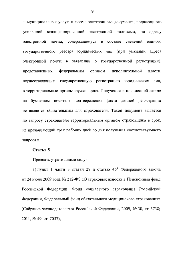 "О ВНЕСЕНИИ ИЗМЕНЕНИЙ В ОТДЕЛЬНЫЕ ЗАКОНОДАТЕЛЬНЫЕ АКТЫ РОССИЙСКОЙ ФЕДЕРАЦИИ В ЧАСТИ СОКРАЩЕНИЯ СРОКОВ РЕГИСТРАЦИИ ЮРИДИЧЕСКИХ ЛИЦ И ИНДИВИДУАЛЬНЫХ ПРЕДПРИНИМАТЕЛЕЙ В ГОСУДАРСТВЕННЫХ ВНЕБЮДЖЕТНЫХ ФОНДАХ И ПРИЗНАНИИ УТРАТИВШИМИ СИЛУ ОТДЕЛЬНЫХ ПОЛОЖЕНИЙ ФЕДЕРАЛЬНОГО ЗАКОНА "О СТРАХОВЫХ ВЗНОСАХ В ПЕНСИОННЫЙ ФОНД РОССИЙСКОЙ ФЕДЕРАЦИИ, ФОНД СОЦИАЛЬНОГО СТРАХОВАНИЯ РОССИЙСКОЙ ФЕДЕРАЦИИ, ФЕДЕРАЛЬНЫЙ ФОНД ОБЯЗАТЕЛЬНОГО МЕДИЦИНСКОГО СТРАХОВАНИЯ"