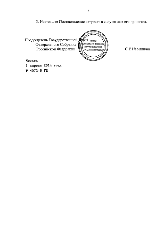 ПОСТАНОВЛЕНИЕ ГД ФС РФ от 01.04.2014 N 4073-6 ГД