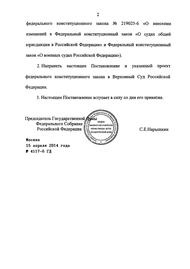 ПОСТАНОВЛЕНИЕ ГД ФС РФ от 15.04.2014 N 4117-6 ГД