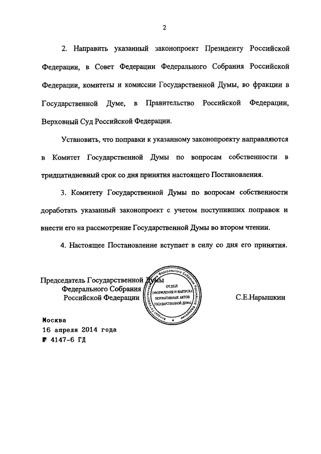 ПОСТАНОВЛЕНИЕ ГД ФС РФ от 16.04.2014 N 4147-6 ГД