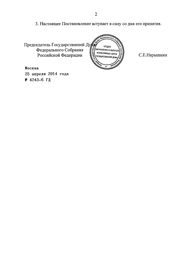 ПОСТАНОВЛЕНИЕ ГД ФС РФ от 25.04.2014 N 4243-6 ГД