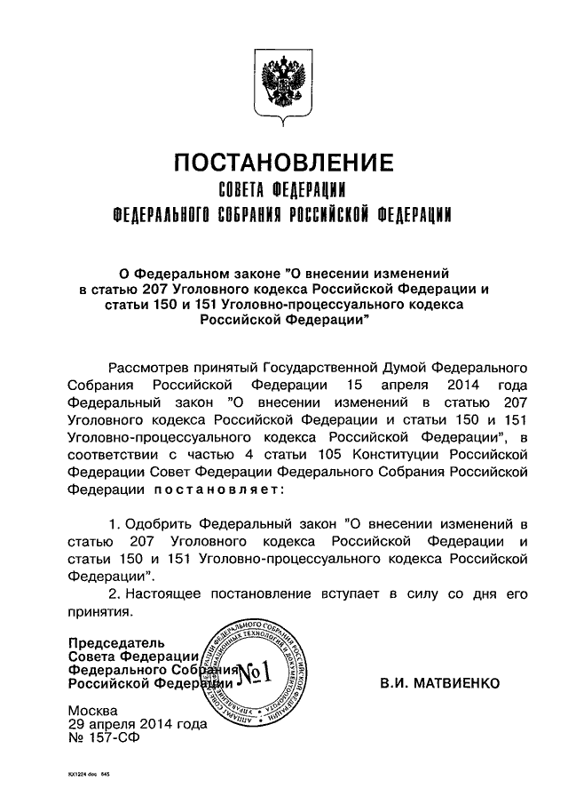 ПОСТАНОВЛЕНИЕ СФ ФС РФ от 29.04.2014 N 157-СФ