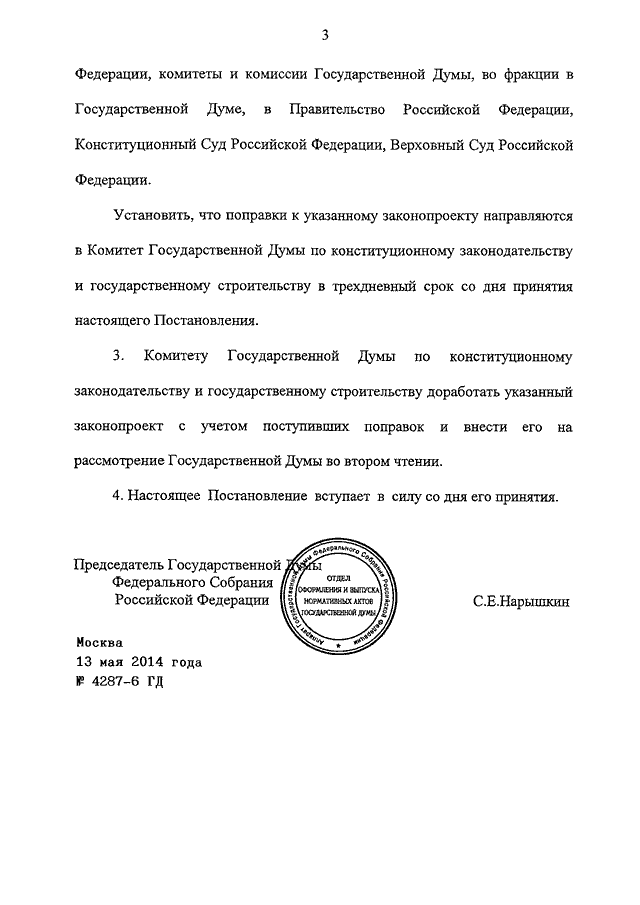 ПОСТАНОВЛЕНИЕ ГД ФС РФ от 13.05.2014 N 4287-6 ГД