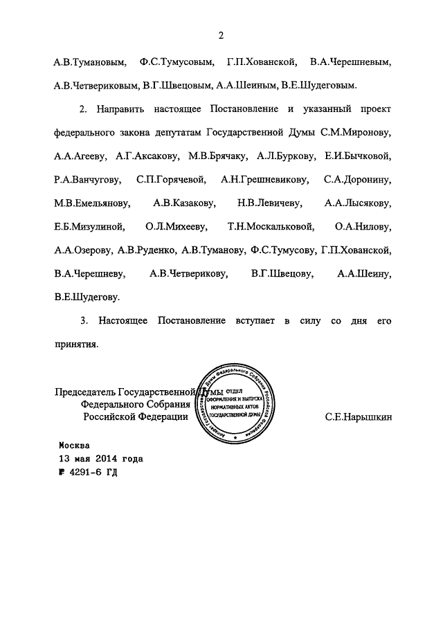 ПОСТАНОВЛЕНИЕ ГД ФС РФ от 13.05.2014 N 4291-6 ГД