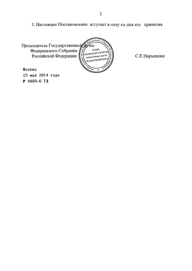 ПОСТАНОВЛЕНИЕ ГД ФС РФ от 23.05.2014 N 4409-6 ГД