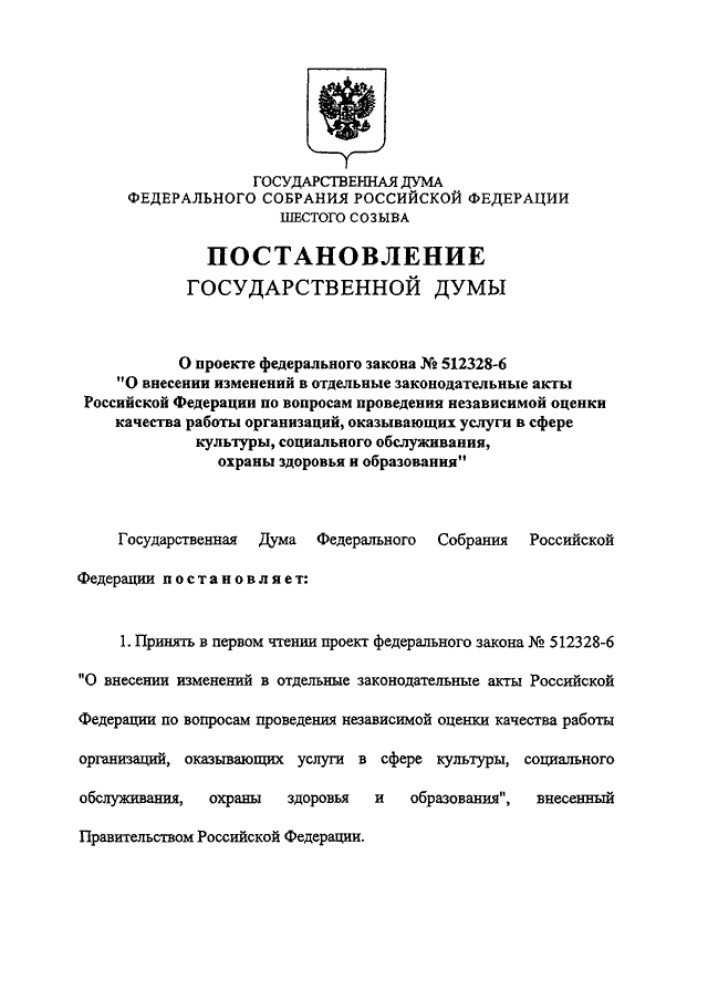 "О ПРОЕКТЕ ФЕДЕРАЛЬНОГО ЗАКОНА N 512328-6 "О ВНЕСЕНИИ ИЗМЕНЕНИЙ В