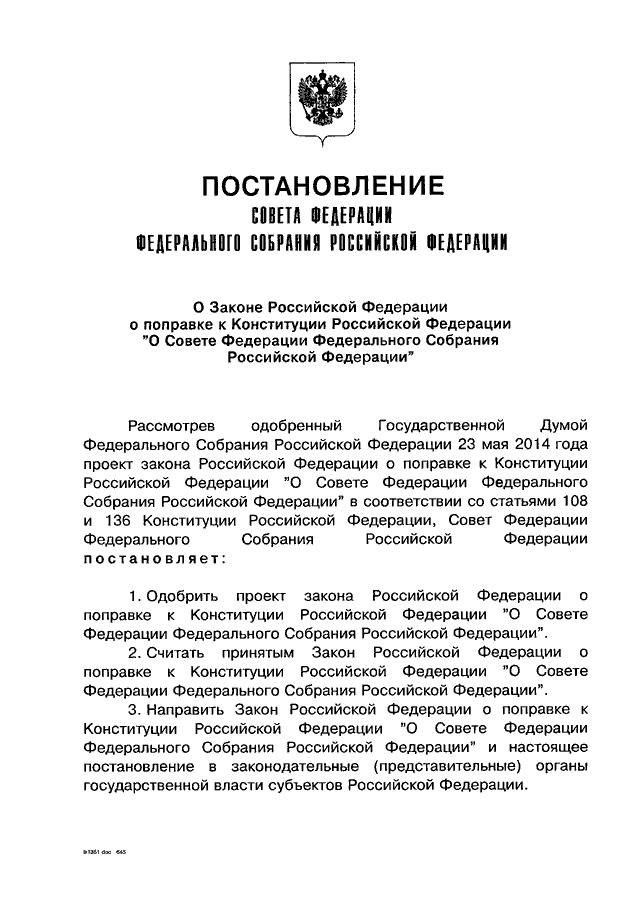 "О ЗАКОНЕ РОССИЙСКОЙ ФЕДЕРАЦИИ О ПОПРАВКЕ К КОНСТИТУЦИИ РОССИЙСКОЙ ФЕДЕРАЦИИ "О СОВЕТЕ ФЕДЕРАЦИИ ФЕДЕРАЛЬНОГО СОБРАНИЯ РОССИЙСКОЙ ФЕДЕРАЦИИ"