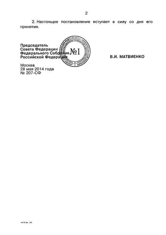 ПОСТАНОВЛЕНИЕ СФ ФС РФ от 28.05.2014 N 207-СФ