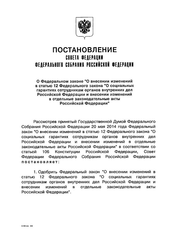 ПОСТАНОВЛЕНИЕ СФ ФС РФ от 28.05.2014 N 215-СФ