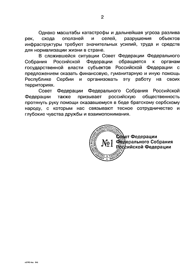 "ОБ ОБРАЩЕНИИ СОВЕТА ФЕДЕРАЦИИ ФЕДЕРАЛЬНОГО СОБРАНИЯ РОССИЙСКОЙ