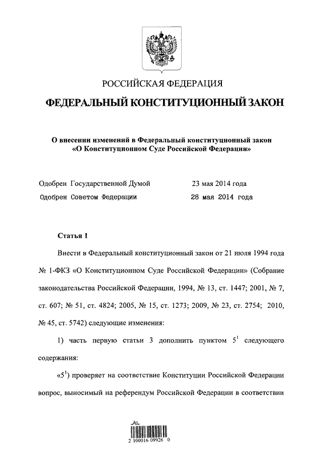 ФЕДЕРАЛЬНЫЙ КОНСТИТУЦИОННЫЙ ЗАКОН от 04.06.2014 N 9-ФКЗ