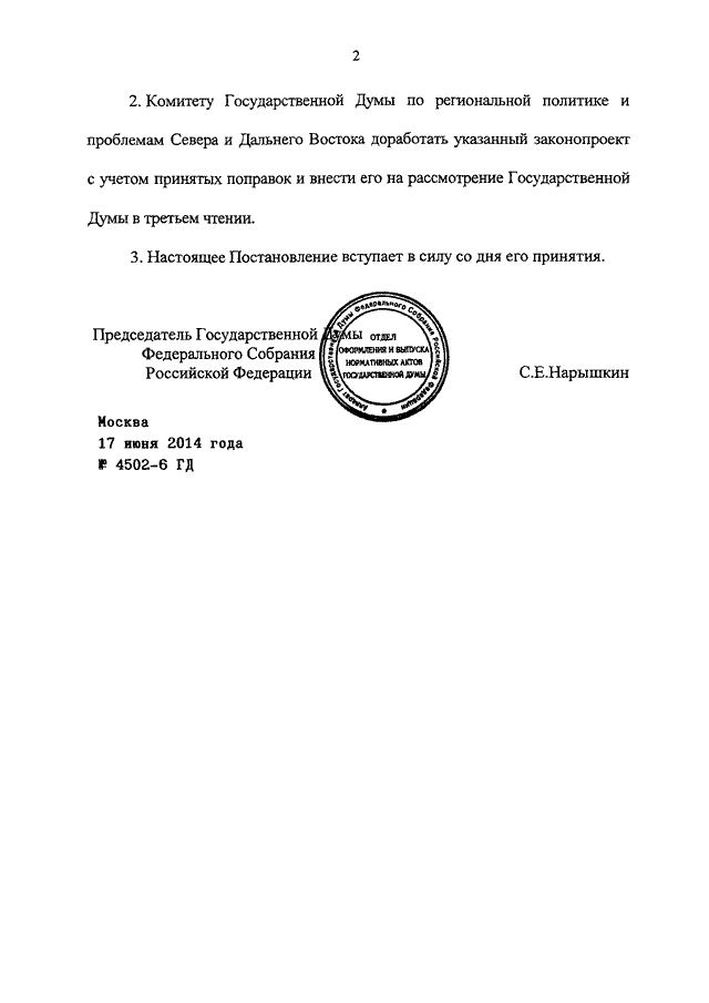 ПОСТАНОВЛЕНИЕ ГД ФС РФ от 17.06.2014 N 4502-6 ГД
