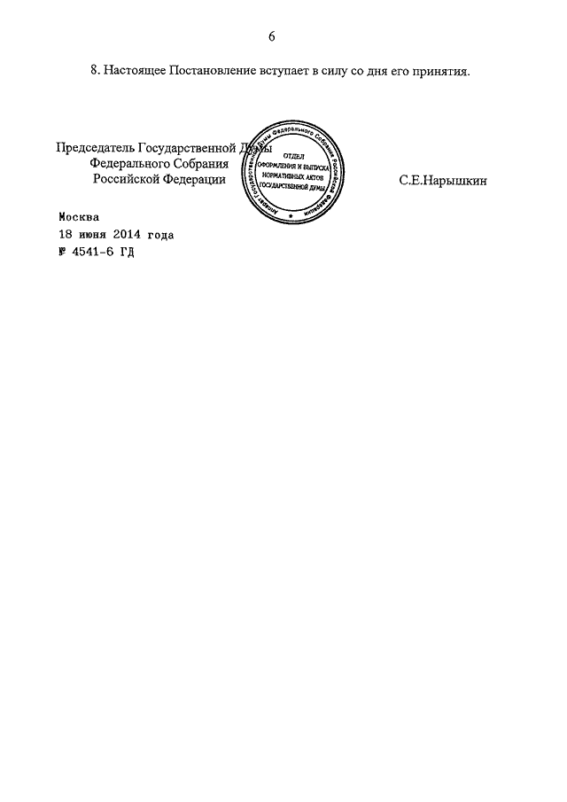 ПОСТАНОВЛЕНИЕ ГД ФС РФ от 18.06.2014 N 4541-6 ГД