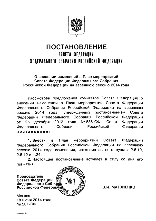 ПОСТАНОВЛЕНИЕ СФ ФС РФ от 18.06.2014 N 261-СФ