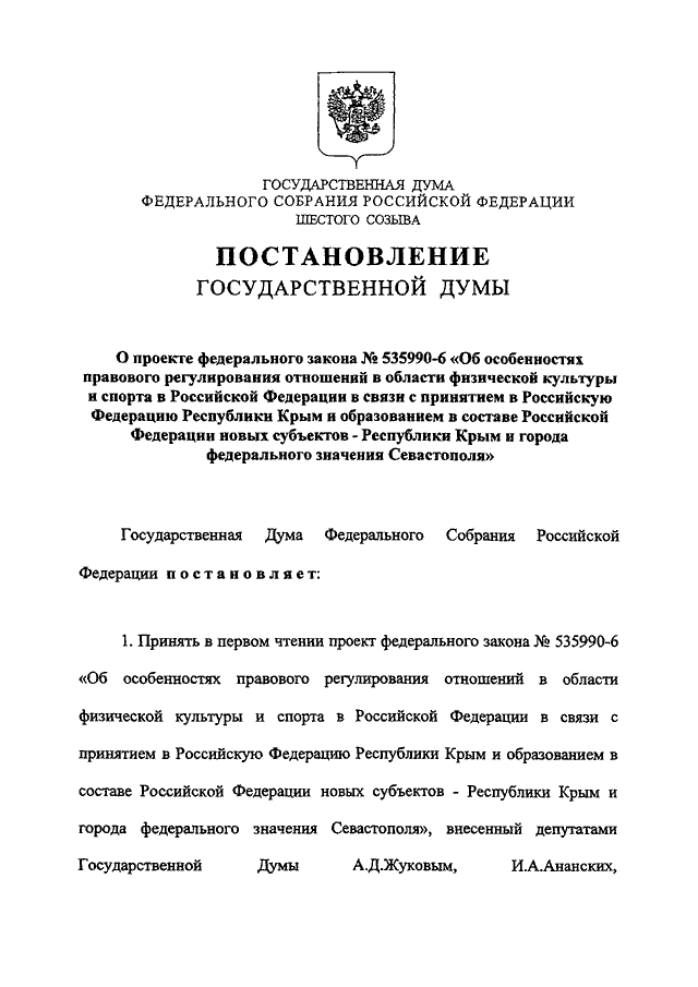 ФЕДЕРАЦИИ НОВЫХ СУБЪЕКТОВ - РЕСПУБЛИКИ КРЫМ И ГОРОДА ФЕДЕРАЛЬНОГО
