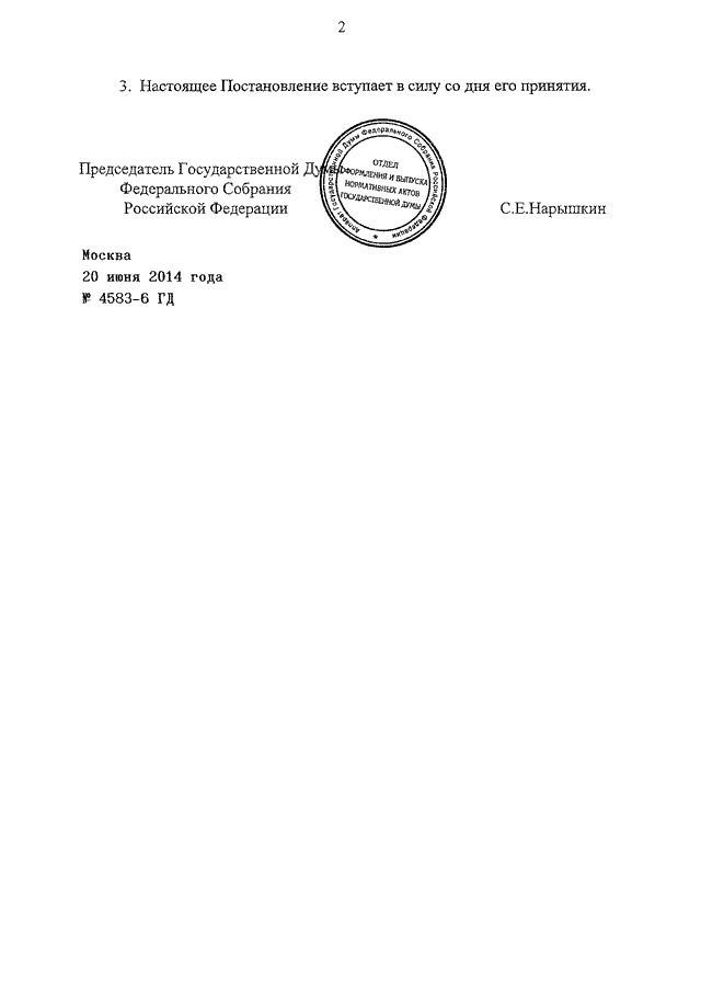 ПОСТАНОВЛЕНИЕ ГД ФС РФ от 20.06.2014 N 4583-6 ГД
