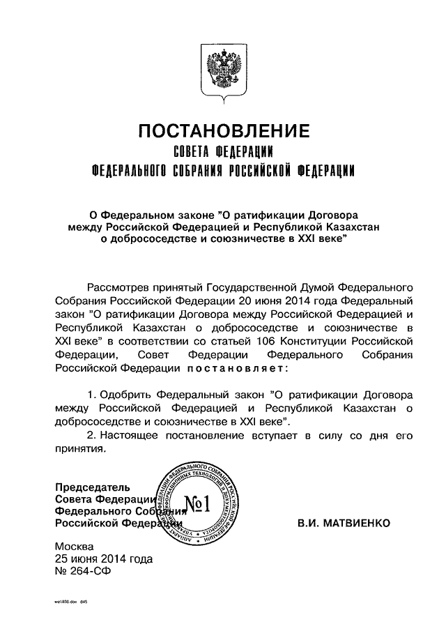 ПОСТАНОВЛЕНИЕ СФ ФС РФ от 25.06.2014 N 264-СФ