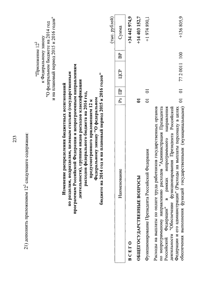 "О ВНЕСЕНИИ ИЗМЕНЕНИЙ В ФЕДЕРАЛЬНЫЙ ЗАКОН "О ФЕДЕРАЛЬНОМ БЮДЖЕТЕ НА 2014 ГОД И НА ПЛАНОВЫЙ ПЕРИОД 2015 И 2016 ГОДОВ"