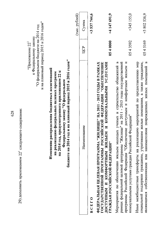 "О ВНЕСЕНИИ ИЗМЕНЕНИЙ В ФЕДЕРАЛЬНЫЙ ЗАКОН "О ФЕДЕРАЛЬНОМ БЮДЖЕТЕ НА 2014 ГОД И НА ПЛАНОВЫЙ ПЕРИОД 2015 И 2016 ГОДОВ"