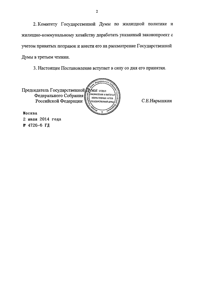 ПОСТАНОВЛЕНИЕ ГД ФС РФ от 02.07.2014 N 4726-6 ГД