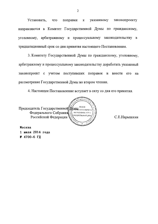 ПОСТАНОВЛЕНИЕ ГД ФС РФ от 01.07.2014 N 4700-6 ГД