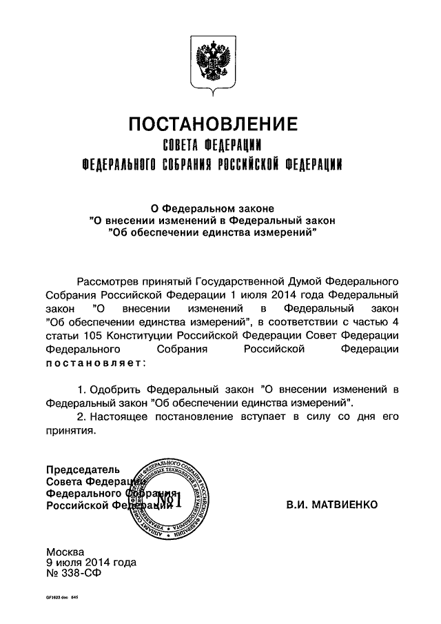 ПОСТАНОВЛЕНИЕ СФ ФС РФ от 09.07.2014 N 338-СФ