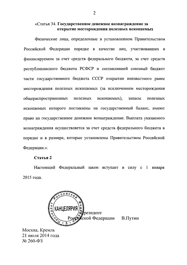 ФЕДЕРАЛЬНЫЙ ЗАКОН от 21.07.2014 N 260-ФЗ