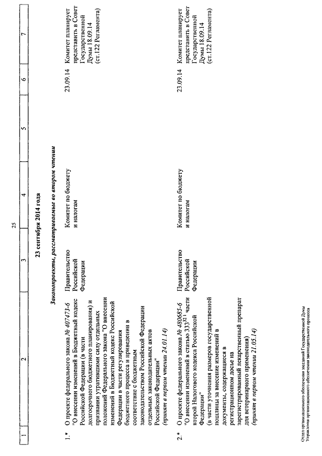 "О КАЛЕНДАРЕ РАССМОТРЕНИЯ ВОПРОСОВ ГОСУДАРСТВЕННОЙ ДУМОЙ С 16 ПО 26 СЕНТЯБРЯ 2014 ГОДА"