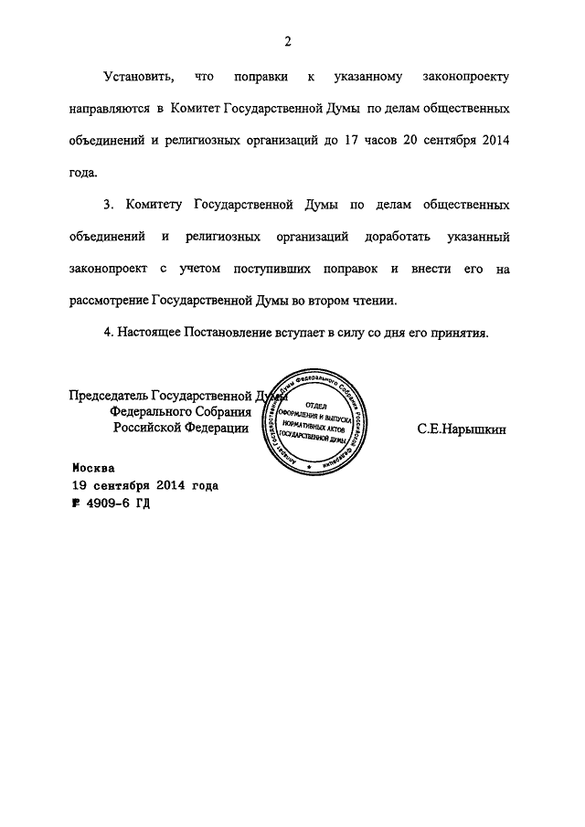 ПОСТАНОВЛЕНИЕ ГД ФС РФ от 19.09.2014 N 4909-6 ГД