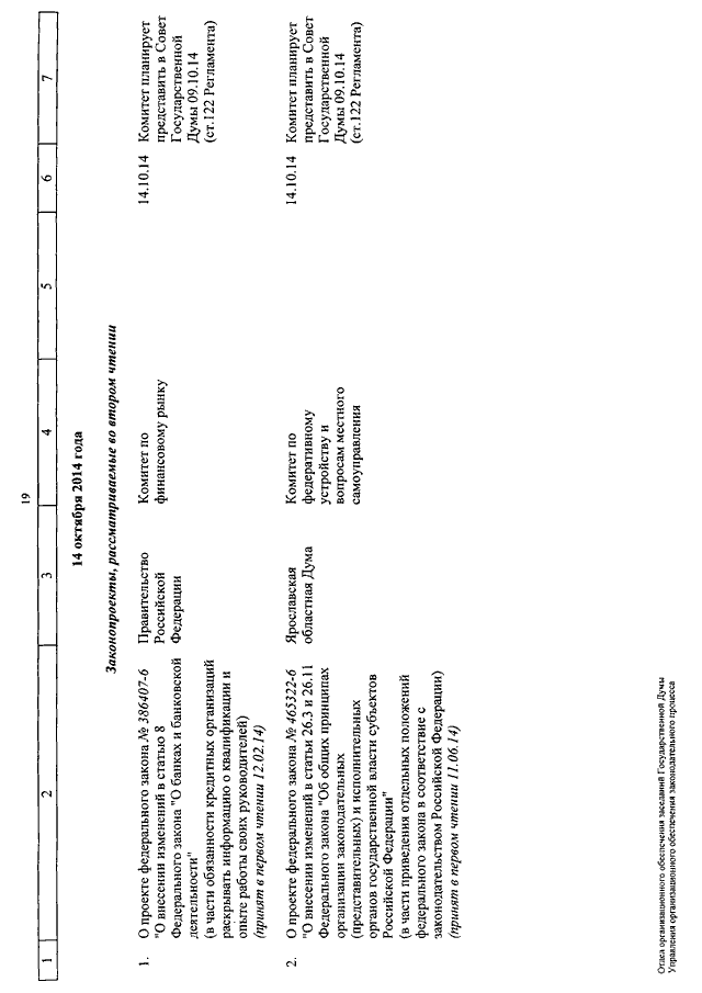 "О КАЛЕНДАРЕ РАССМОТРЕНИЯ ВОПРОСОВ ГОСУДАРСТВЕННОЙ ДУМОЙ С 7 ПО 24 ОКТЯБРЯ 2014 ГОДА"