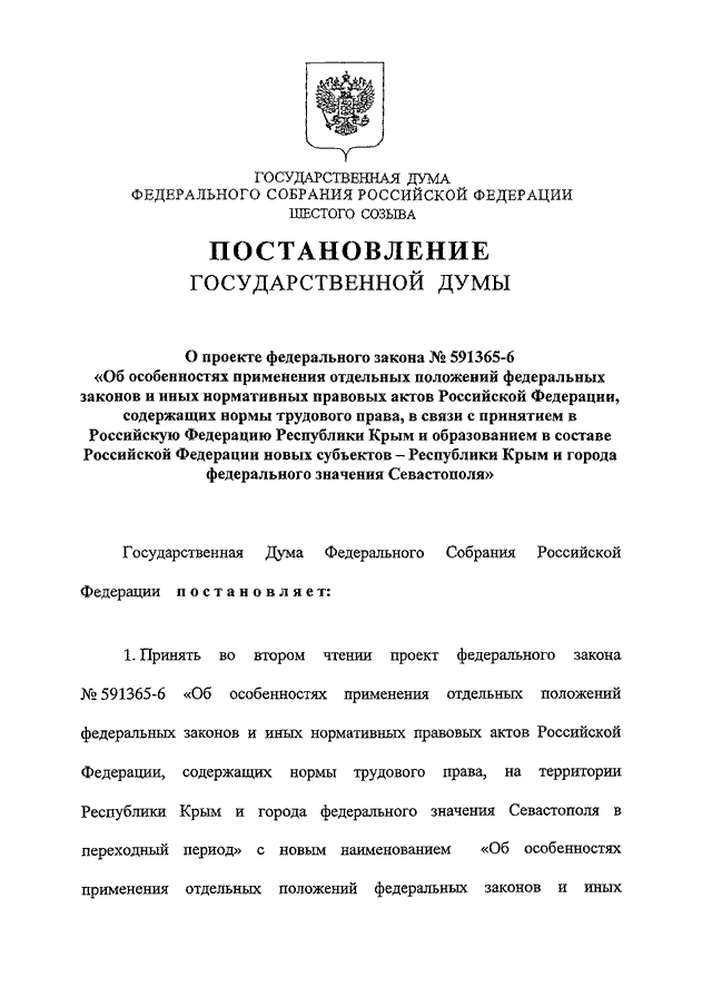 ТРУДОВОГО ПРАВА, В СВЯЗИ С ПРИНЯТИЕМ В РОССИЙСКУЮ ФЕДЕРАЦИЮ