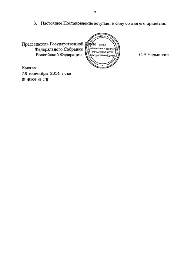 ПОСТАНОВЛЕНИЕ ГД ФС РФ от 26.09.2014 N 4984-6 ГД