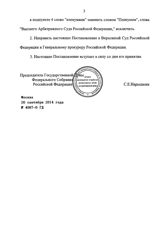 ПОСТАНОВЛЕНИЕ ГД ФС РФ от 26.09.2014 N 4987-6 ГД