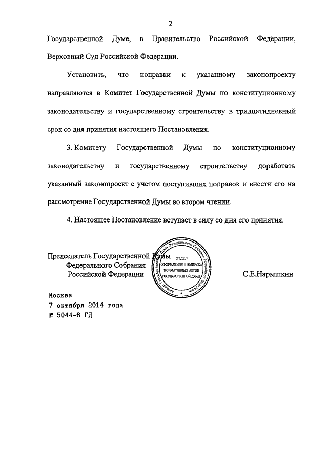 ПОСТАНОВЛЕНИЕ ГД ФС РФ от 07.10.2014 N 5044-6 ГД