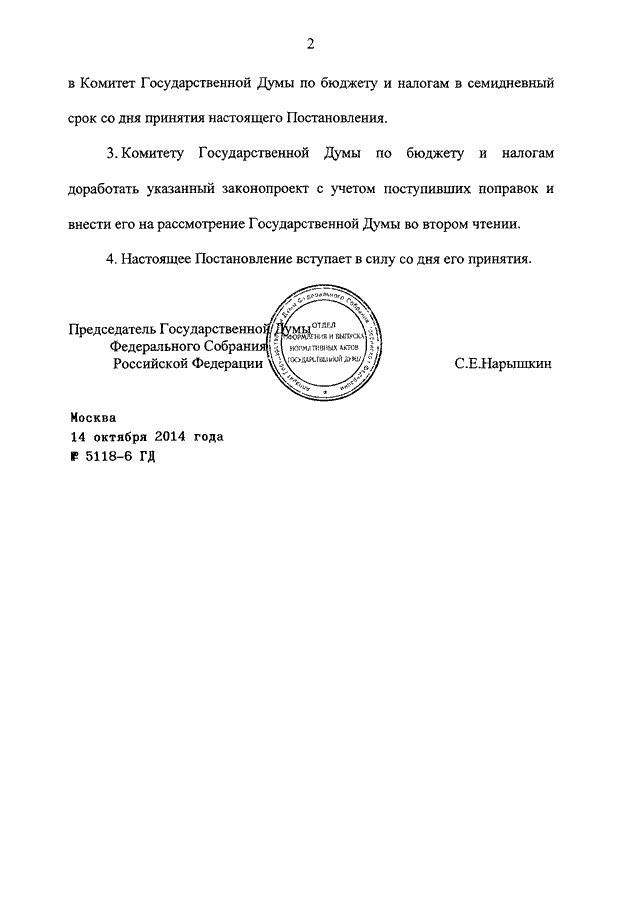 ПОСТАНОВЛЕНИЕ ГД ФС РФ от 14.10.2014 N 5118-6 ГД