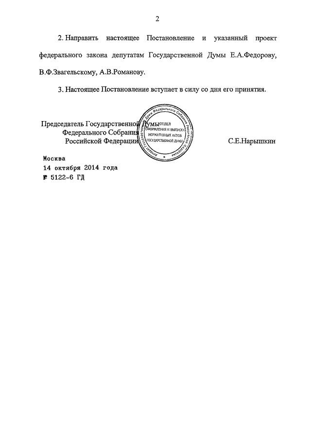 ПОСТАНОВЛЕНИЕ ГД ФС РФ от 14.10.2014 N 5122-6 ГД