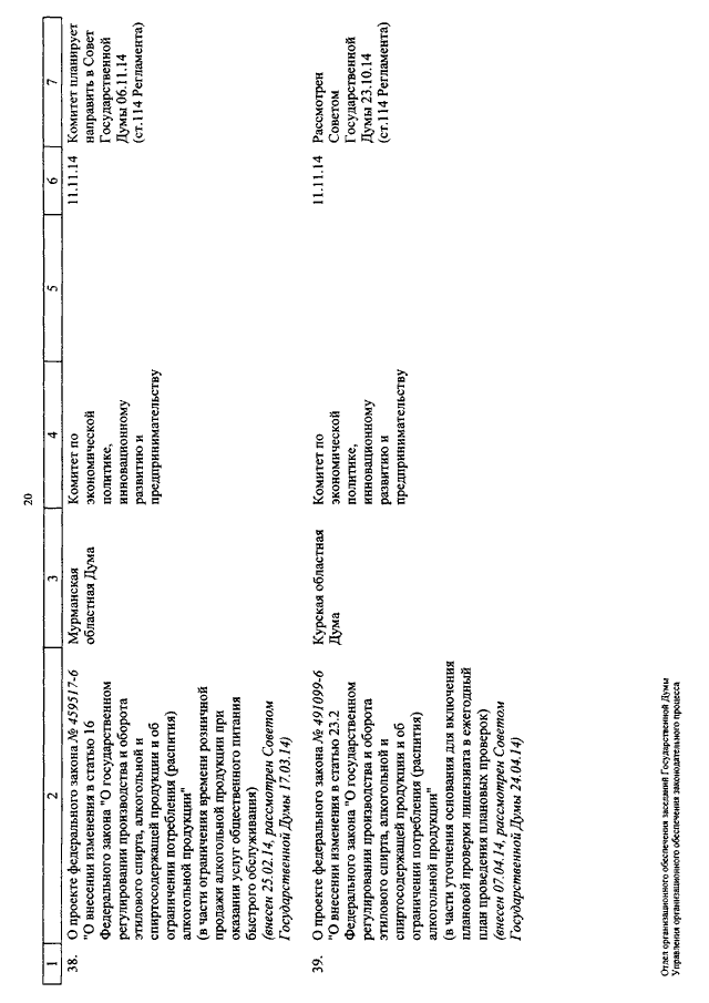 "О КАЛЕНДАРЕ РАССМОТРЕНИЯ ВОПРОСОВ ГОСУДАРСТВЕННОЙ ДУМОЙ С 11 ПО 21 НОЯБРЯ 2014 ГОДА"