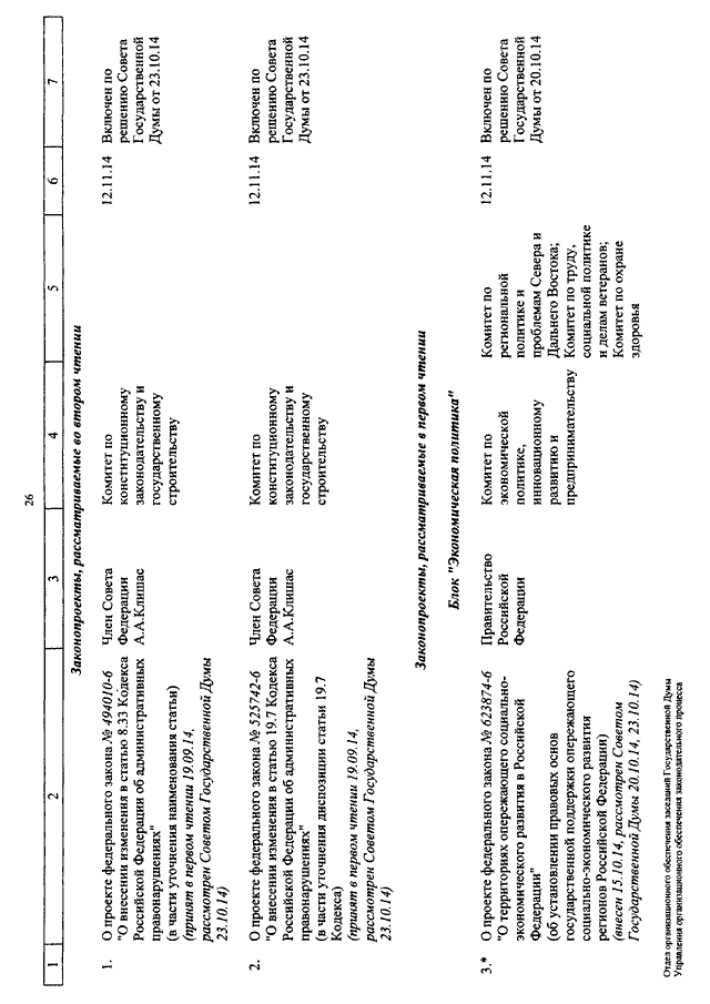 "О КАЛЕНДАРЕ РАССМОТРЕНИЯ ВОПРОСОВ ГОСУДАРСТВЕННОЙ ДУМОЙ С 11 ПО 21 НОЯБРЯ 2014 ГОДА"