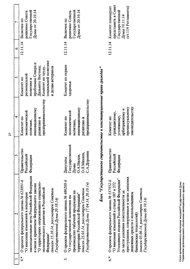 "О КАЛЕНДАРЕ РАССМОТРЕНИЯ ВОПРОСОВ ГОСУДАРСТВЕННОЙ ДУМОЙ С 11 ПО 21 НОЯБРЯ 2014 ГОДА"